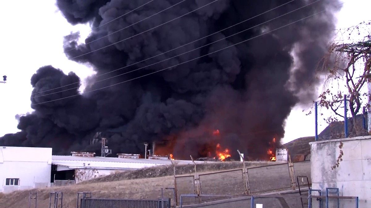 Fabrikanın kimyasal madde üretimi veya depolama bölümünde başlayan yangın, kısa sürede büyüdü.