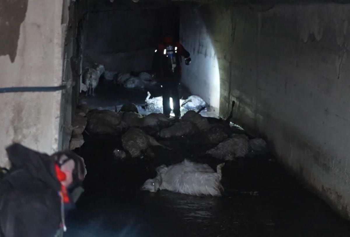 Telef oldu sanılan bir hayvan da ekiplerin müdahalesiyle menfezden çıkarıldı.