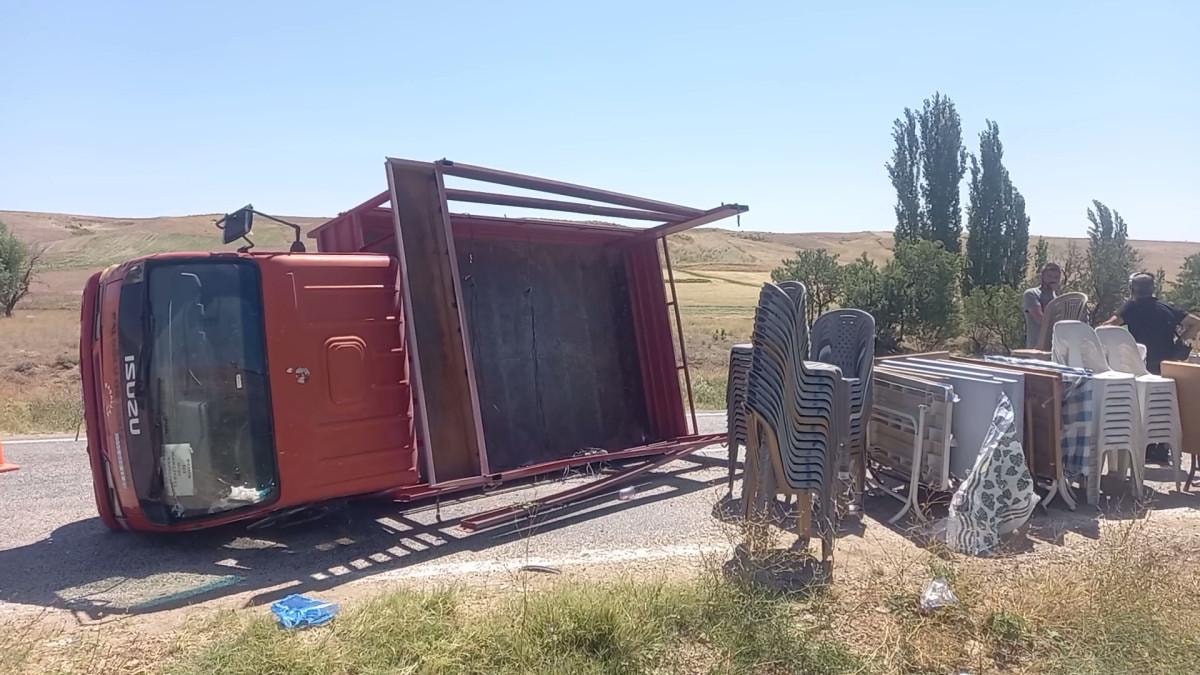 Kamyonetin kasasında bulunan masa ve sandalyeler de devrilmenin ardından yola savruldu.