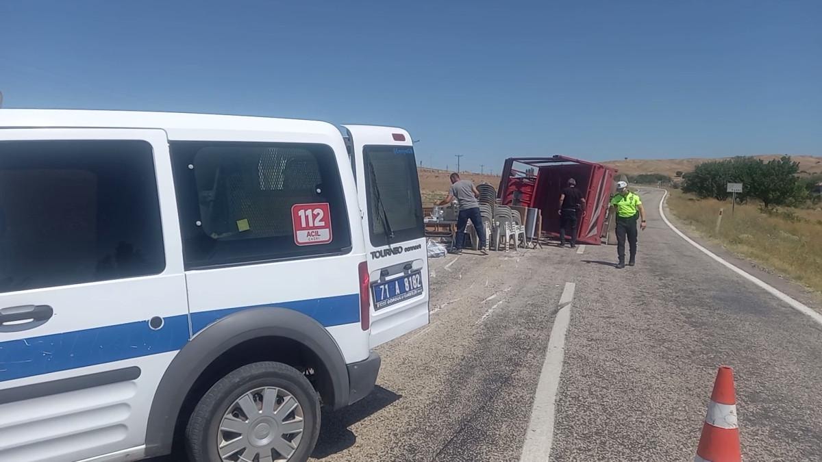Balışeyh-Sulakyurt kara yolunda 22 yaşındaki B.A. yönetimindeki organizasyon şirketine ait kamyonet, henüz bilinmeyen bir nedenle sürücüsünün direksiyon kontrolünü kaybetmesiyle devrildi.