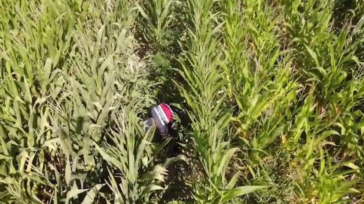 Ekipler, mısır tarlasını "drone" ile havadan kontrol ederek kenevir bitkisinin ekili olduğu alanı tespit etti.