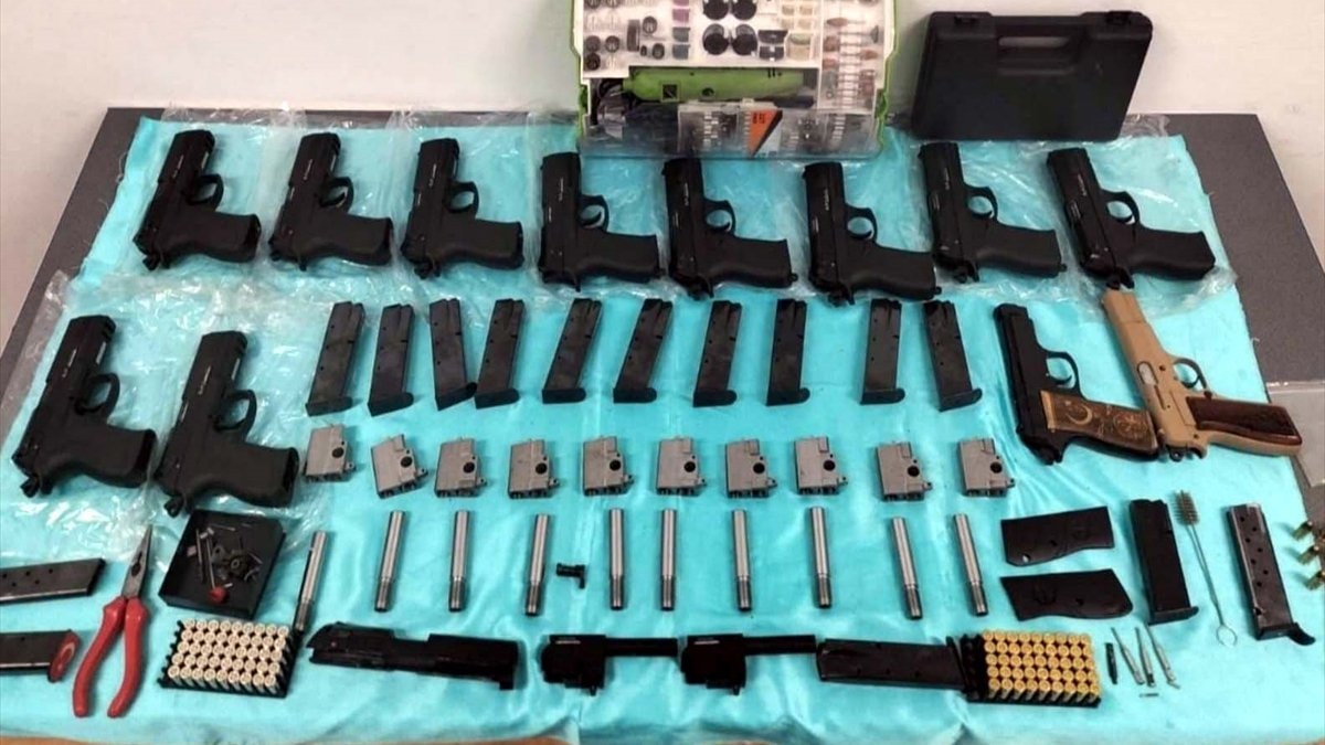 Evlerde yapılan aramada 11 kurusıkı tabanca, 14 şarjör, 10 fişek, 10 mekanizması açılmış namlu ve silah mekaniğine ait parça ve bir taşlama seti ele geçirildi.