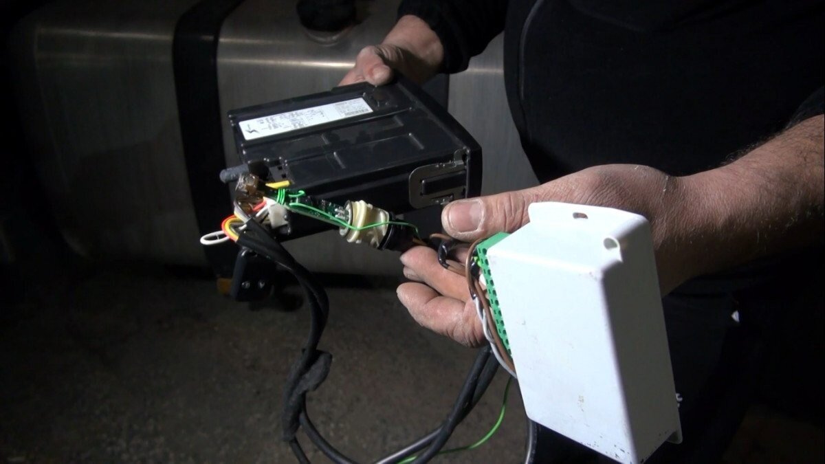 Burada yapılan incelemelerde, tırda takılı 2 takograf ve uzaktan kumandalı bir düzenek kurulduğu tespit edildi.