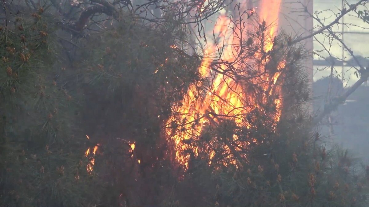 Kırıkkale'de Atatürk Parkı'nda meydana gelen olayda edinilen bilgiye göre, henüz bilinmeyen bir nedenle bir çam ağacı alev alev yandı.