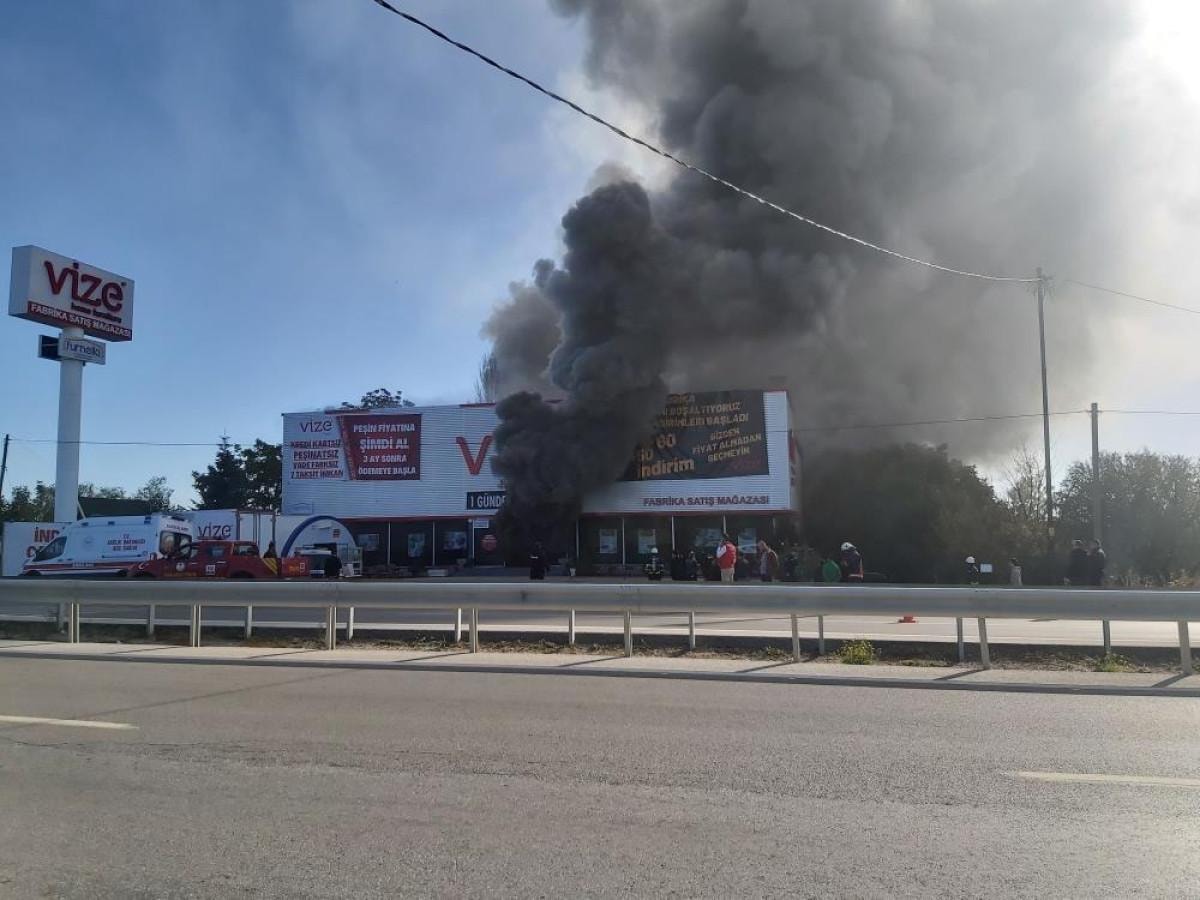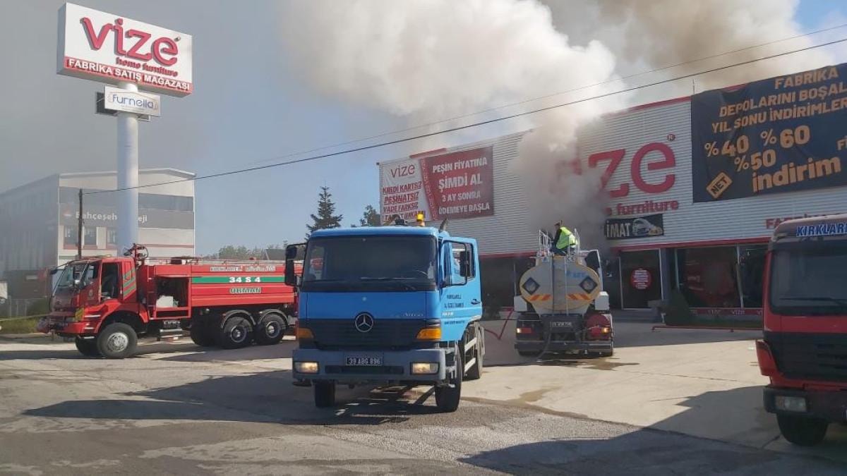Kırklareli-İstanbul yolu üzerinde bulunan bir mobilya mağazasında yangın çıktı.