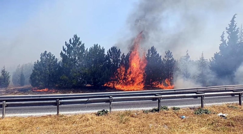 Kırklareli'nin Babaeski ile Lüleburgaz ilçeleri arasında anızlık alanda çıkan yangın, rüzgarın da etkisiyle kısa sürede büyüdü. Yangından yükselen yoğun duman, D100 karayolunda görüş mesafesini düşürdü.