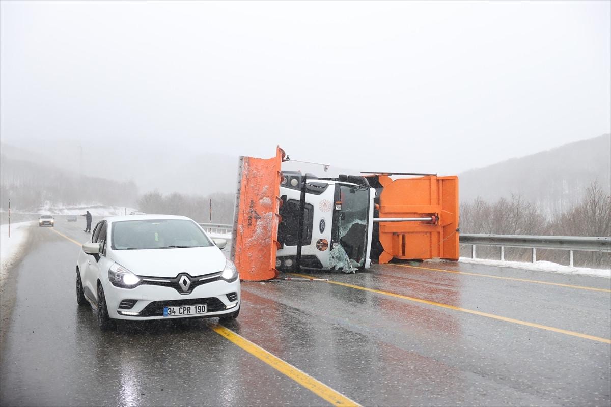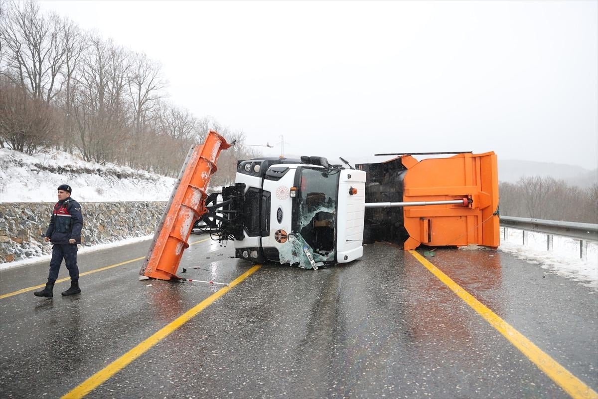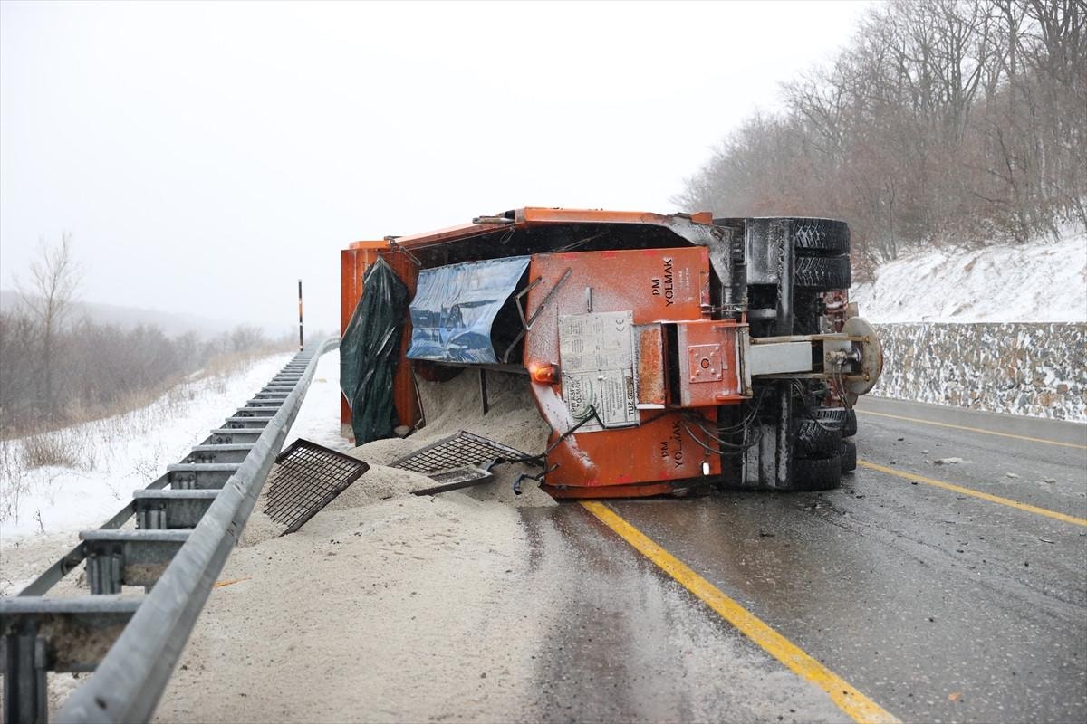 KAR KÜREME ARACI DEVRİLDİ: 2 YARALI