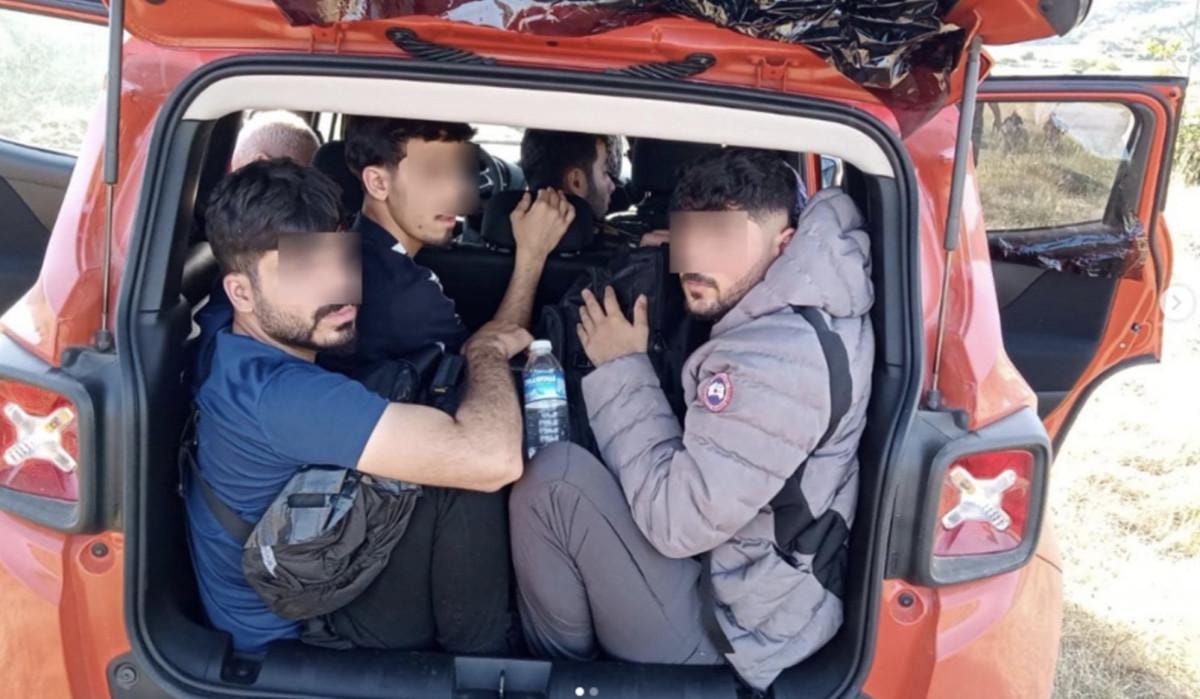 Otomobilde 1'i sürücü 5 Suriye ve 4 Irak uyruklu kaçak göçmen yakalanarak gözaltına alındı.