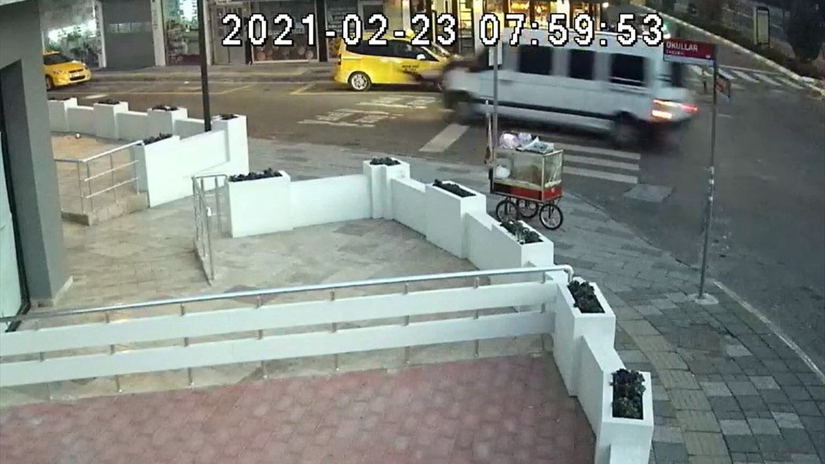 Kaza anı bölgedeki bir güvenlik kamerasına da yansıdı. Polis, sürücünün midibüs ile ters yöne girdiğini belirledi.