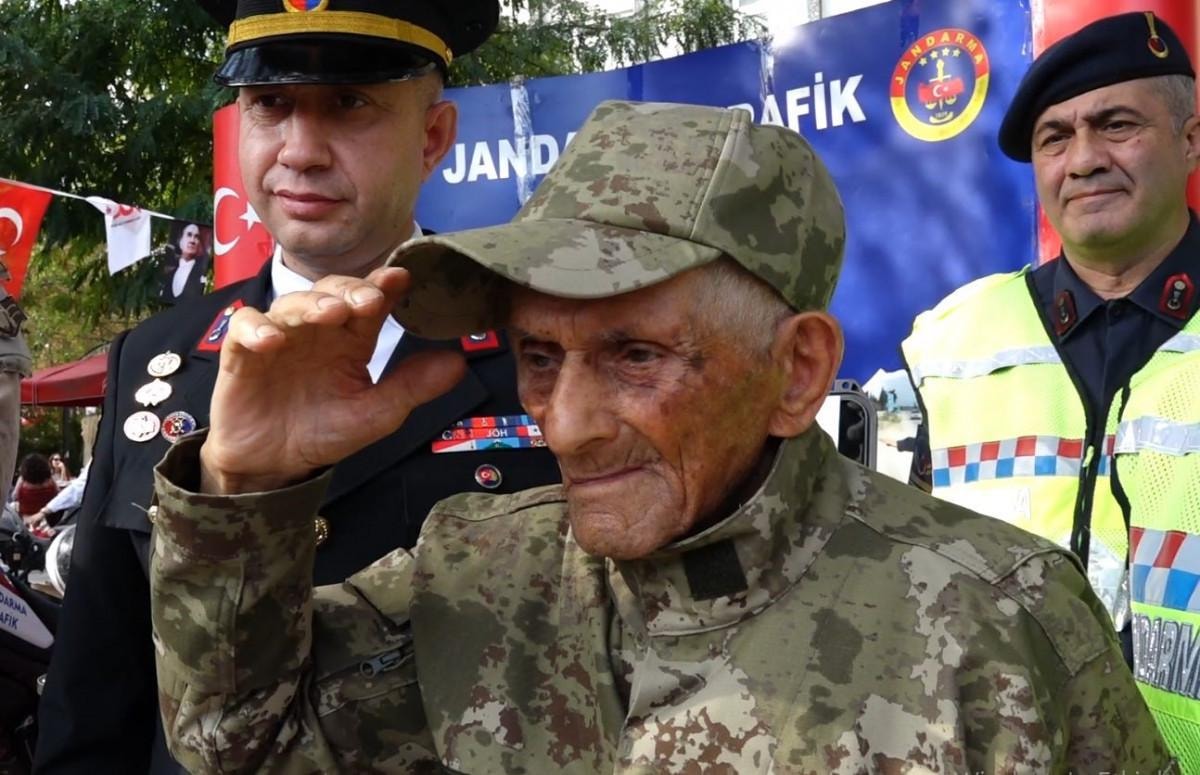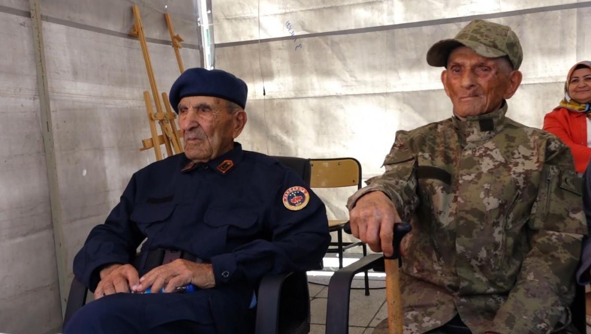 Kırklareli'nde yaşayan ve Cumhuriyet ile aynı yaşta olan Aziz Gündoğdu ile Şerafettin Karaca, yıllar sonra giydikleri askeri üniforma ile törene katıldı.