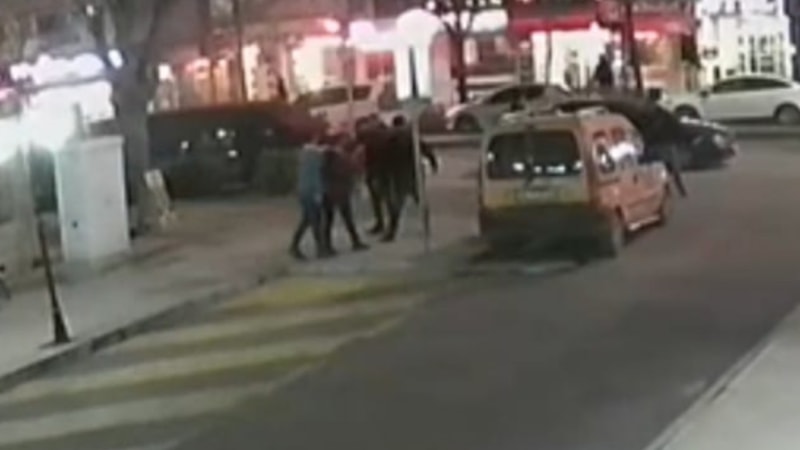 Görüntülerde arbede yaşandığı ardından şüphelilerin kaçtığı görüldü.