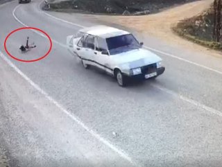 Otomobil sürücüsü hemen aracından inerek, düşen çocuğu kucakladı ve otomobiline binerek yoluna devam etti.