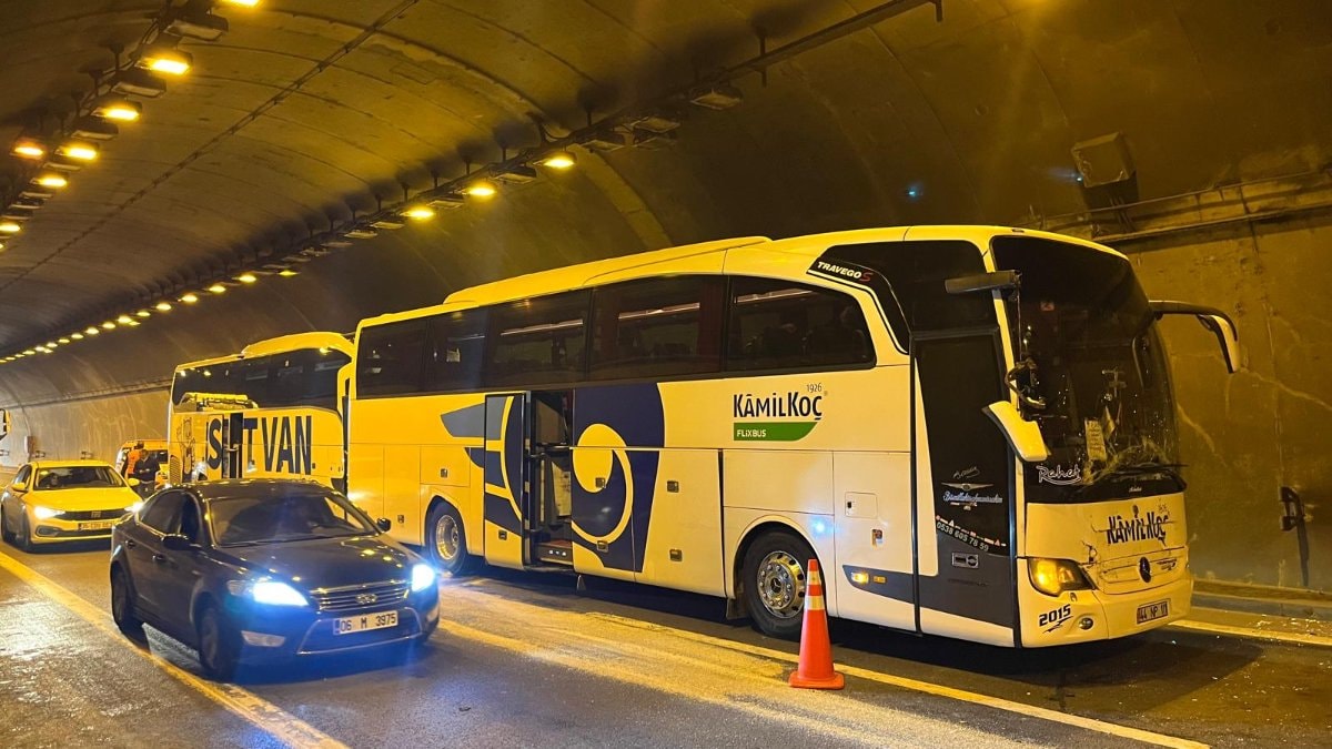 TEM Otoyolu'nun İzmit ilçesi geçişindeki Korutepe Tüneli’nde İstanbul yönüne giden İ.T. idaresindeki yolcu otobüsü, bir anda kontrolden çıkarak önünde seyreden E.T. idaresindeki tıra çarptı.