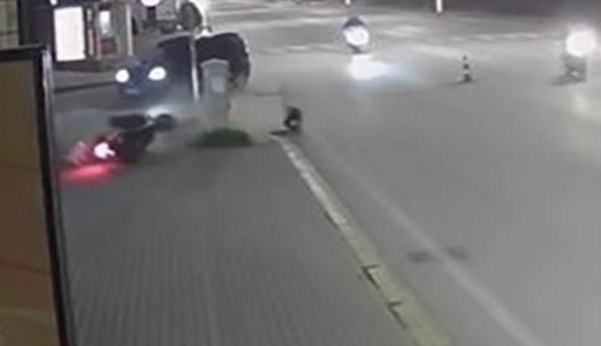 Çarpmanın şiddetiyle yola düşen ve motosikletle sürüklenen Özdemir'in yön levhasına çarpıp savrulduğu anlar da yer alıyor.