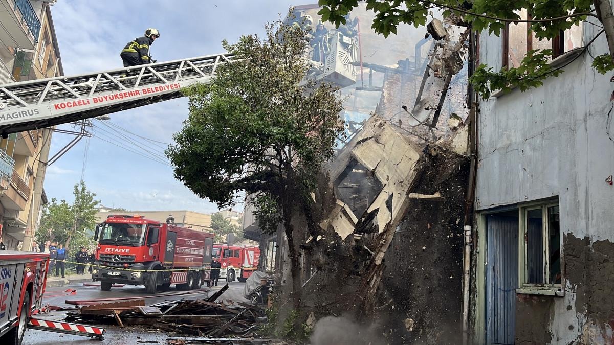 Alevleri söndürmek için çalışma başlatılırken, müdahale eden 2 itfaiye eri düşen ahşap malzemeler nedeniyle yaralandı.