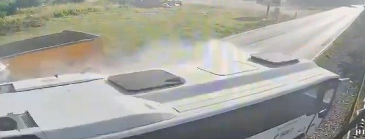 Görüntülerde tırın karşı yönden gelen otobüsle çarpıştığı anlar yer aldı.