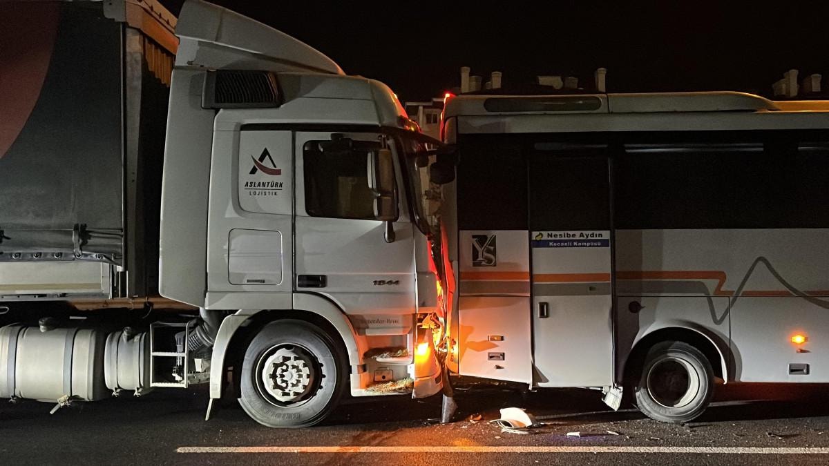Bu sırada aynı şeritte arkasından gelmekte olan midibüs tıra çarptı.