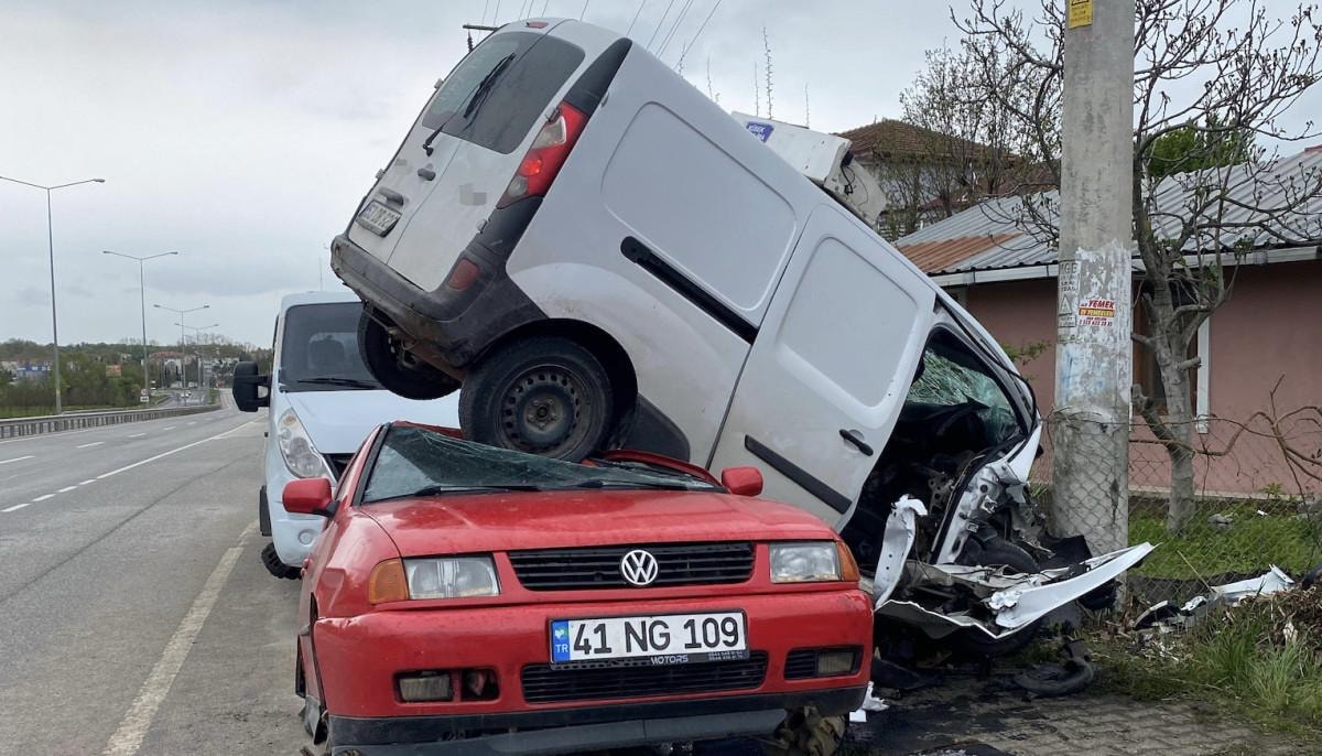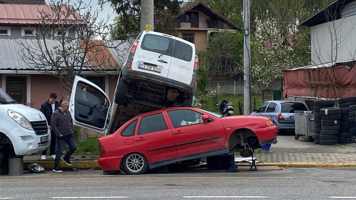 Kocaeli'nin Kartepe ilçesinde M.K. idaresindeki hafif ticari araç, sürücüsünün direksiyon hakimiyetini kaybetmesiyle, oto tamirciye tamir için bırakılan otomobilin üstüne çıktı.