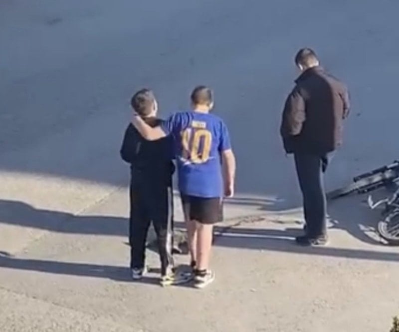 Çocukların duyarlı davranışı, çevredeki vatandaşlar tarafından cep telefonu kameralarıyla kaydedildi.