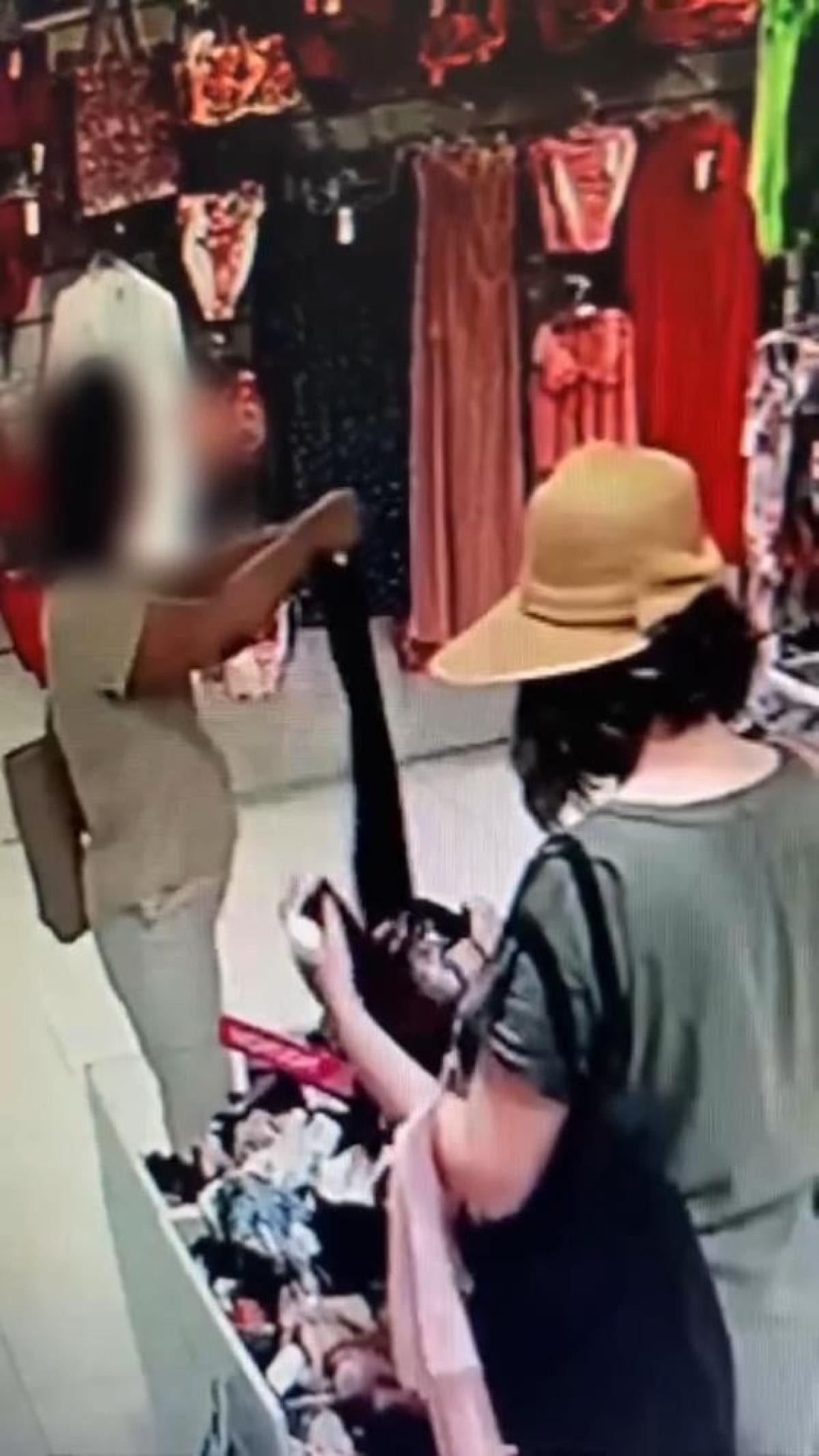Kocaeli'nin İzmit ilçesinde yürüyüş yolu üzerinde bulunan iç giyim mağazasına iş yerine müşteri gibi giren kadın, eline aldığı fantezi kıyafetini ilk olarak inceledi.