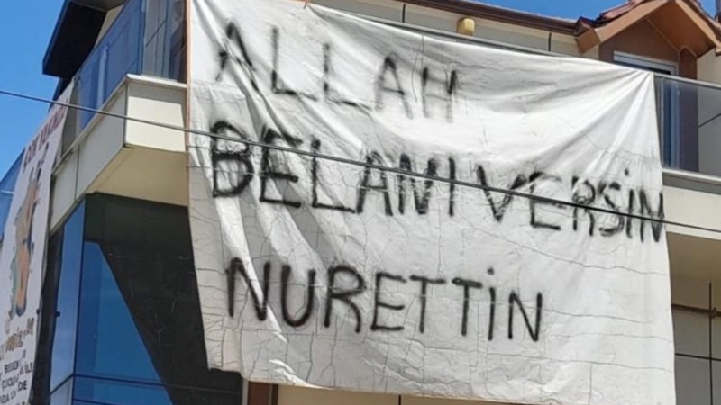 Başiskele ilçesinde bir binaya asılan, "Allah b.lanı versin Nurettin" yazılı pankart, görenleri hayrete düşürdü.