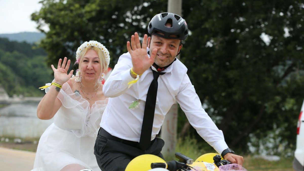 Kandıra’nın doğal turistik öneme sahip mekanlarını tanıtmak için gerçekleştirilen festivale, yeni evlenen bir çift gelinlik ve damatlıkla katıldı.