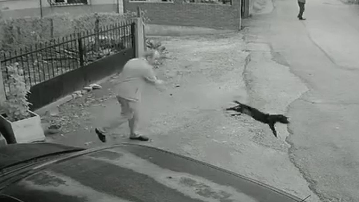 O anlar bir evin güvenlik kamerasına yansıdı. Görüntülerde köpeğin yere fırlatıldıktan sonra acı çığlıkları ve çevredeki vatandaşların E.B.'ye gösterdiği tepki yer aldı.