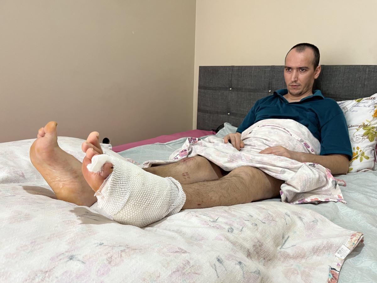 Kardeşinin yüzde 70 işitme engelli olduğunu da ifade eden Tahir Özmenek, “Ameliyat ile sağ bacağına platin takıldı. 2 üst 2 de alt tarafta olmak üzere platini tutmak için 4 tane vidası var. Arabanın kırılan camları ve patlayan farları sol ayağını kesiyor. Sol ayağında kesikler var, ayak tarak kemikleri de kırık.