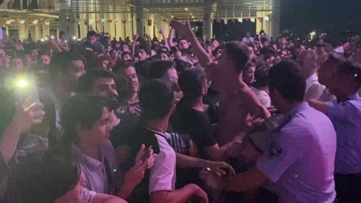 Konser sırasında alkollü oldukları öğrenilen gençler arasında tartışma çıktı.