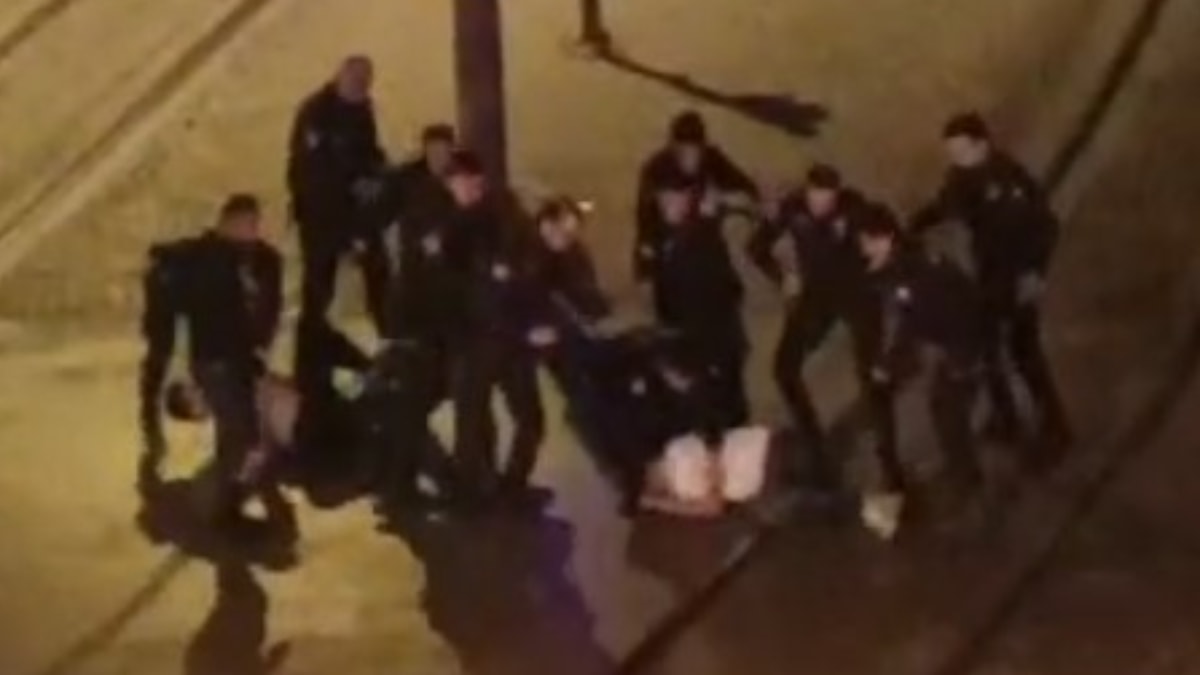 Görüntülerde, şüphelinin polise yumruk attığı ve ekiplerin şüphelileri yere yatırarak gözaltına aldığı anlar yer aldı.