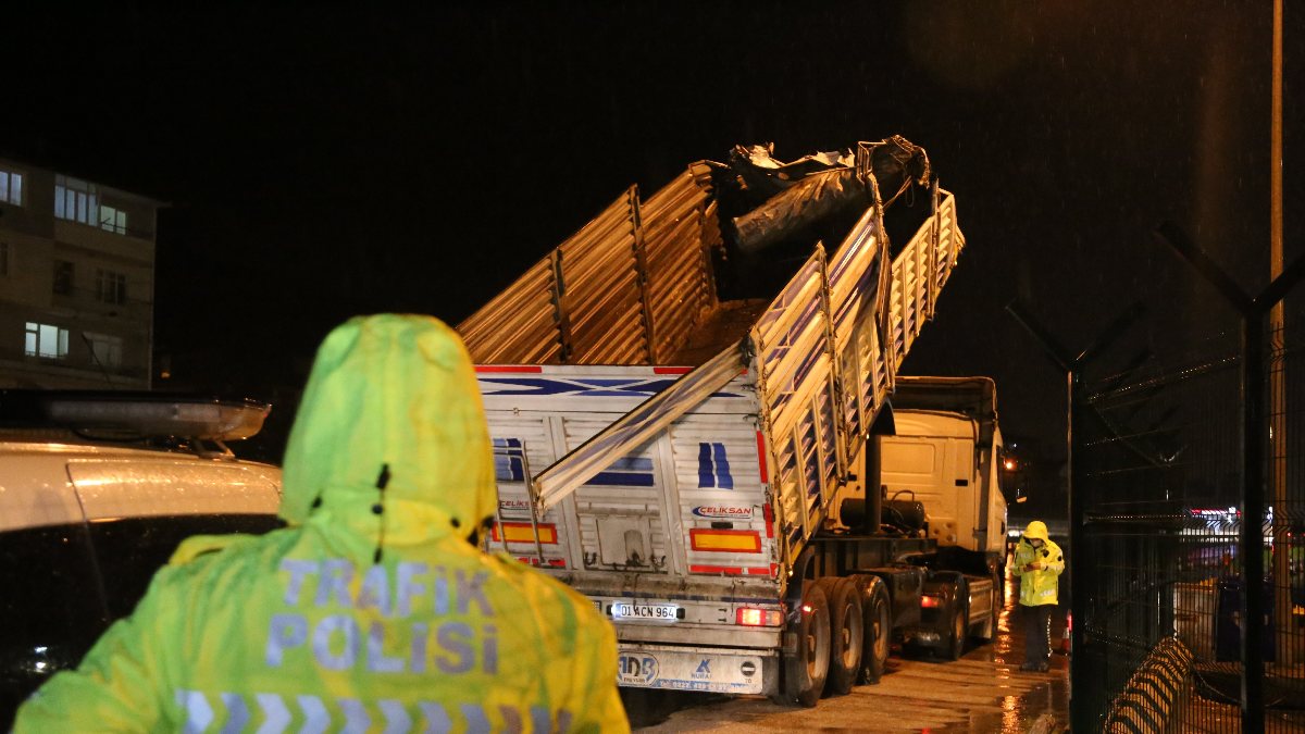 Tır sürücüsünün ihbarı üzerine olay yerine gelen polis ekipleri, incelemelerde bulundu. Kaza anını anlatan tır sürücüsü Akbulut, şiddetli bir ses duyunca damperin açıldığını fark ettiğini söyleyerek, “Teknik bir hatadan dolayı açılmış. Sesi duyunca kaza yaptığımı anladım. Daha sonra polis ekiplerini aradım. Kimsede çok şükür bir şey yok.” dedi.