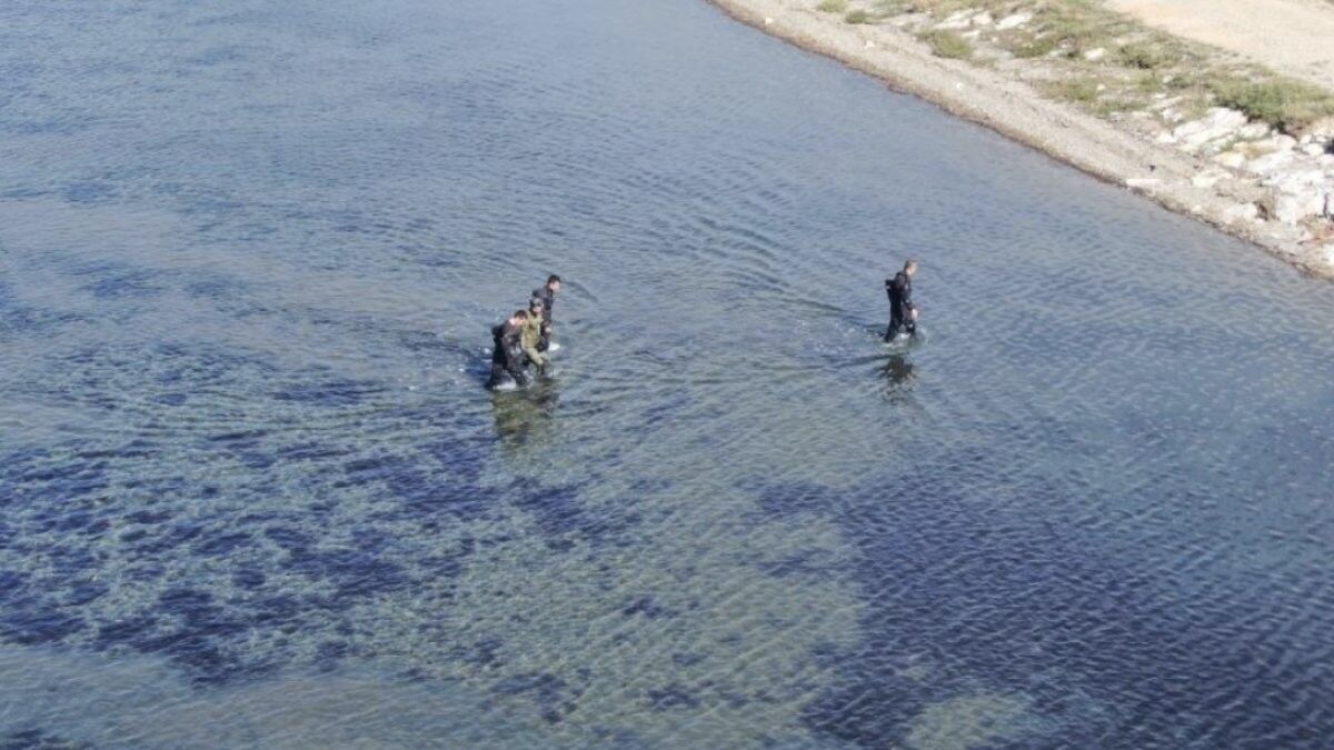 Şahıslardan birinin, suda kamufle olabilmek için giydiği özel dalgıç kıyafetiyle kaçak şekilde avlanma anı da insansız hava aracı tarafından saniye saniye görüntülendi.
