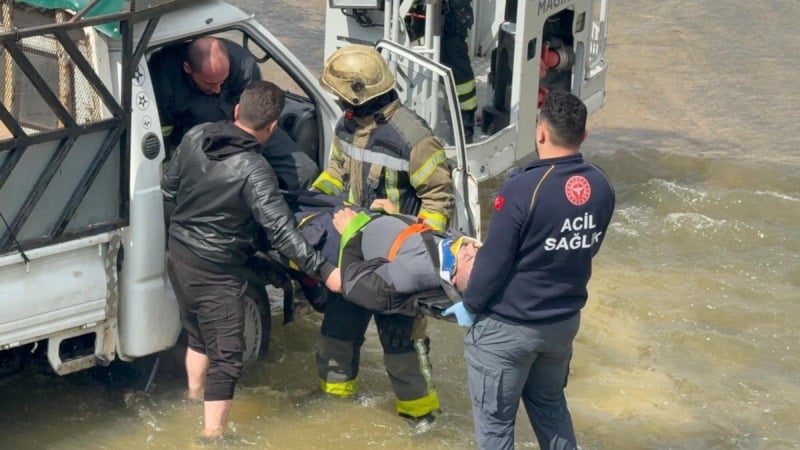 Suya inen itfaiye eri, araç içerisinde bilinci kapalı halde bulunan sürücü M.E.'ye dakikalarca kalp masajı yaparak adeta zamanla yarıştı.