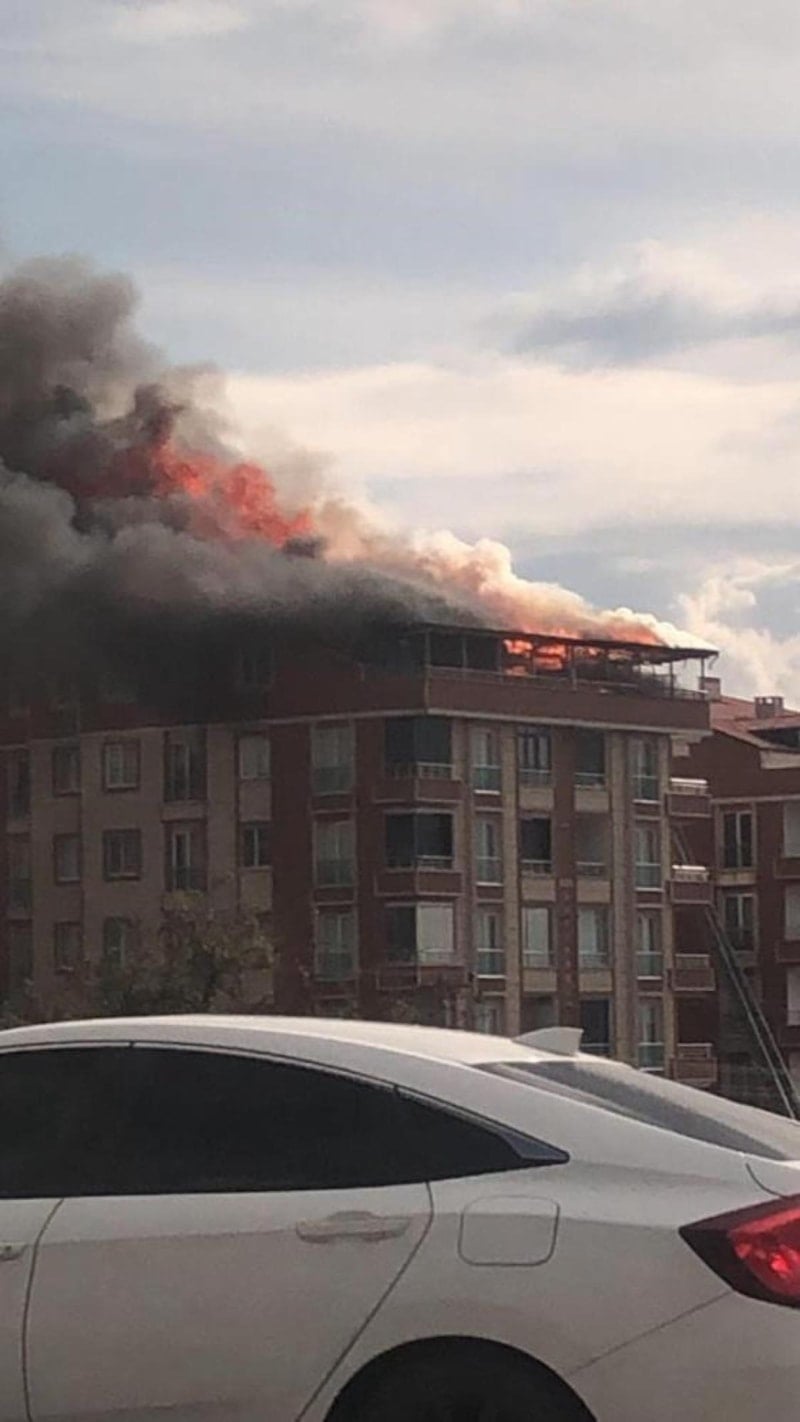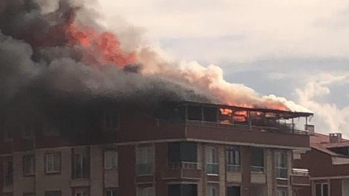 Apartmanın son katında bulunan dubleks dairede çıkan yangın, kısa süre içerisinde büyüdü ve çatıya sıçradı.