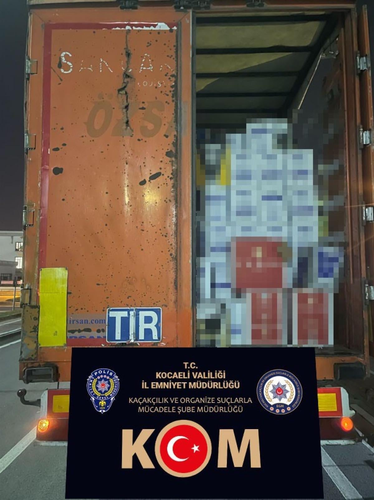 Kocaeli İl Emniyet Müdürlüğü Kaçakçılık ve Organize Suçlarla Mücadele Şube Müdürlüğü ekipleri, İzmit'te durdurulan tırda arama yaptı.