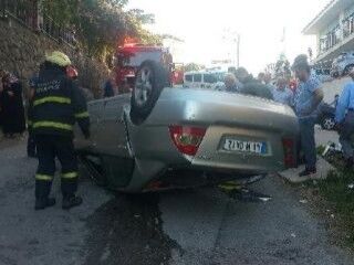 Gölcük ilçesinde otomobil, ehliyetsiz sürücüsünün kontrolünden çıkarak yaklaşık 3 metre yükseklikteki istinat duvarından uçtu.