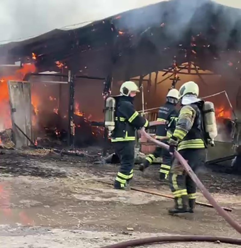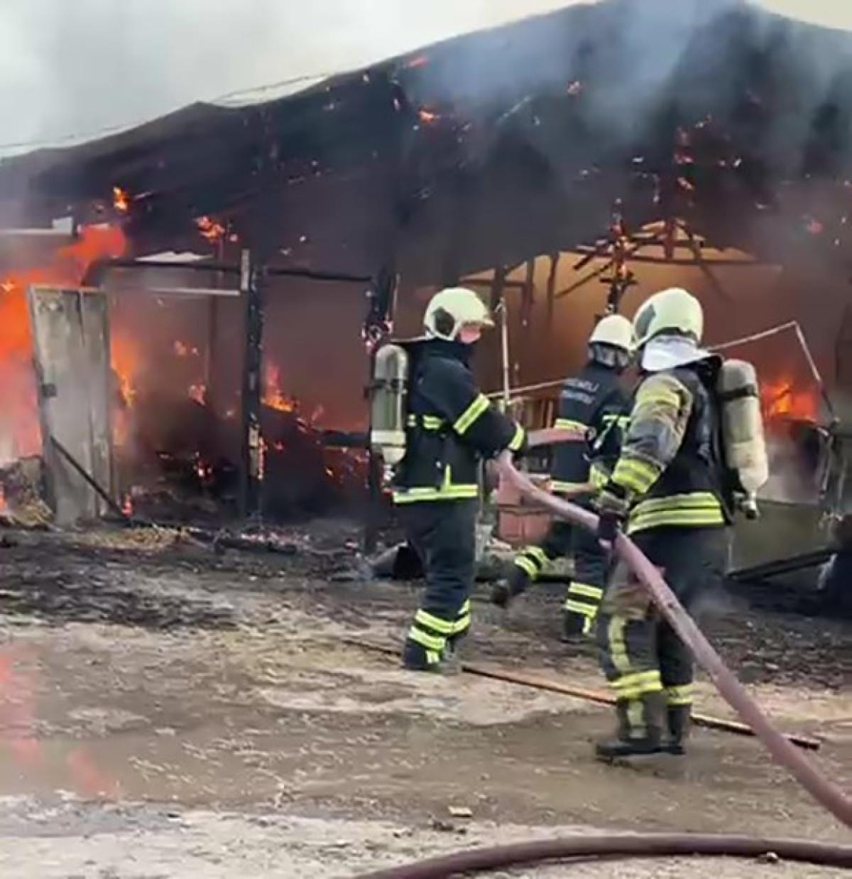 Karamürsel ilçesi Karapınar Mahallesi'ndeki çiftlikte bulunan samanlıkta meydana gelen olayda, elektrik kontağından yangın çıktı.