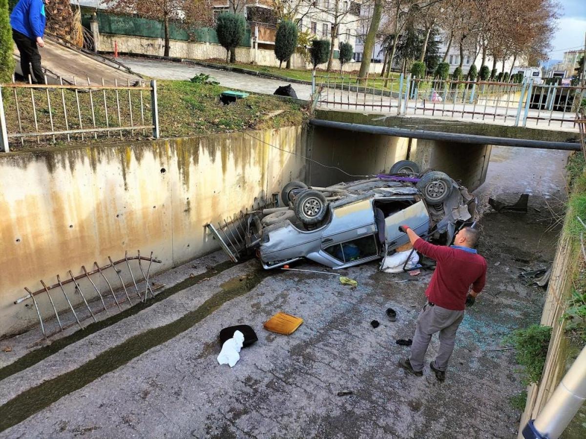 Kocaeli'nin Gebze ilçesinde bulunan İstasyon Mahallesi'nde cadde üzerinde seyir halinde bulunan 78 FA 925 plakalı otomobilin sürücüsü S.Ç, direksiyon hakimiyetini kaybederek yol kenarında bulunan dere yatağına uçtu.