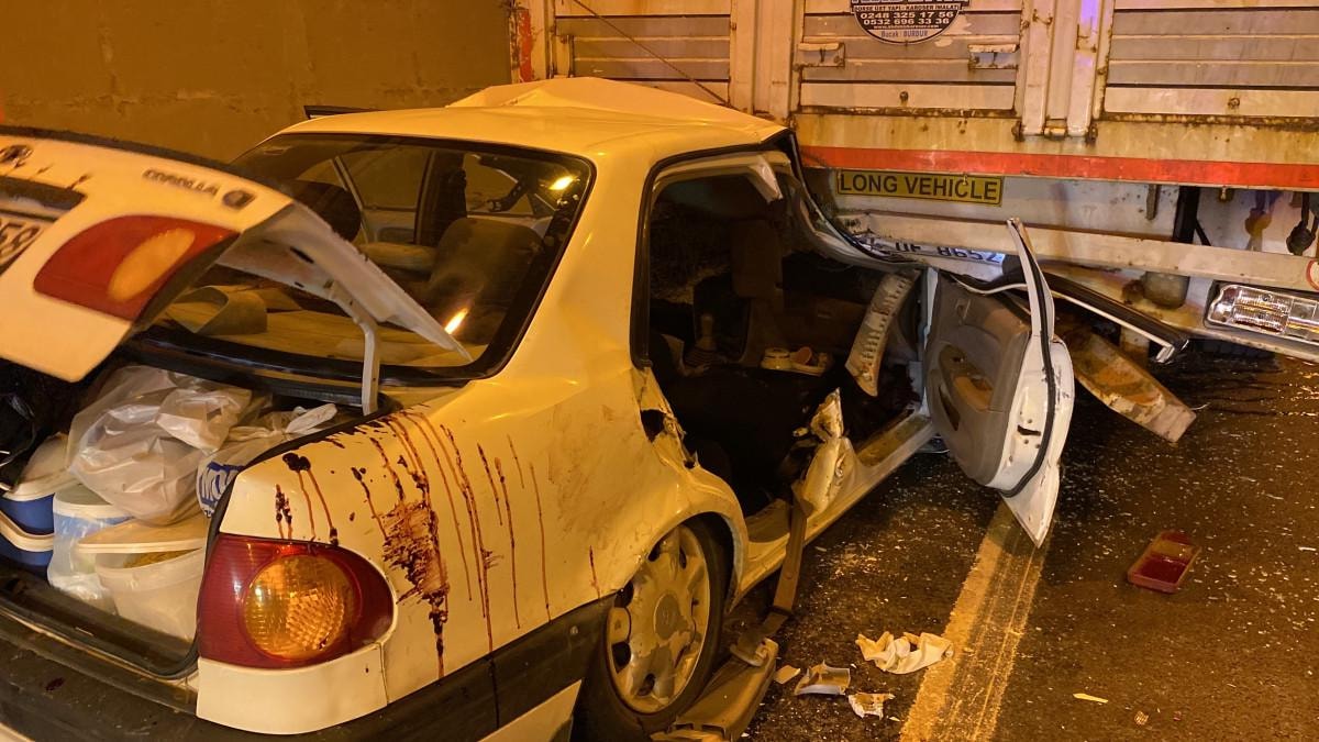 Çarpmanın şiddetiyle otomobilin yarısı tırın altına girdi. Korkunç kazayı gören vatandaşlar 112 Acil Çağrı Merkezi'ne haber verdi.