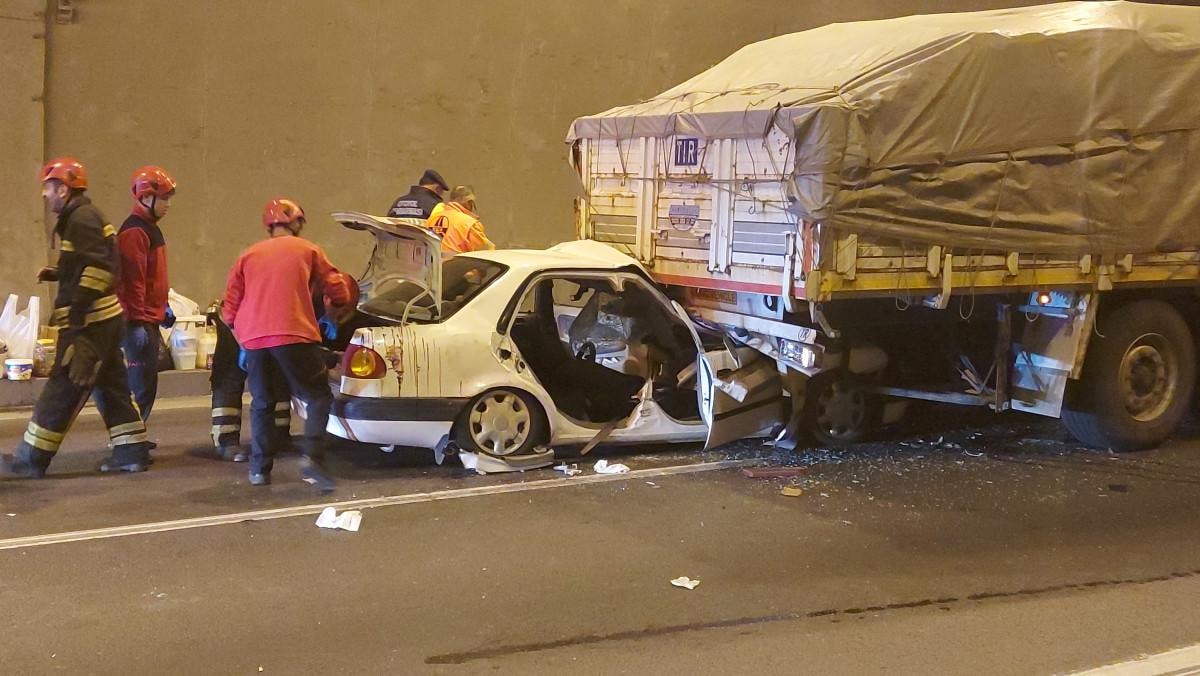 Kocaeli'nin İzmit ilçesi TEM Otoyolu İstanbul istikameti Gültepe Tüneli'nde meydana gelen olayda İsmet A. idaresindeki 34 YM 6858 Toyota marka otomobil, 34 FUE 856 plakalı tıra arkadan çarptı.