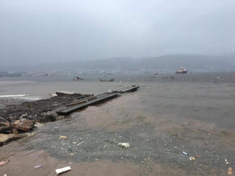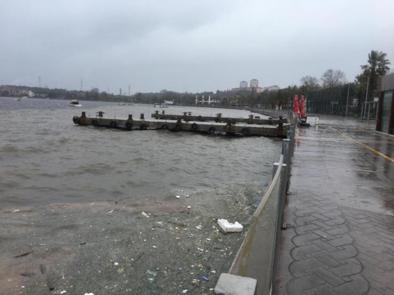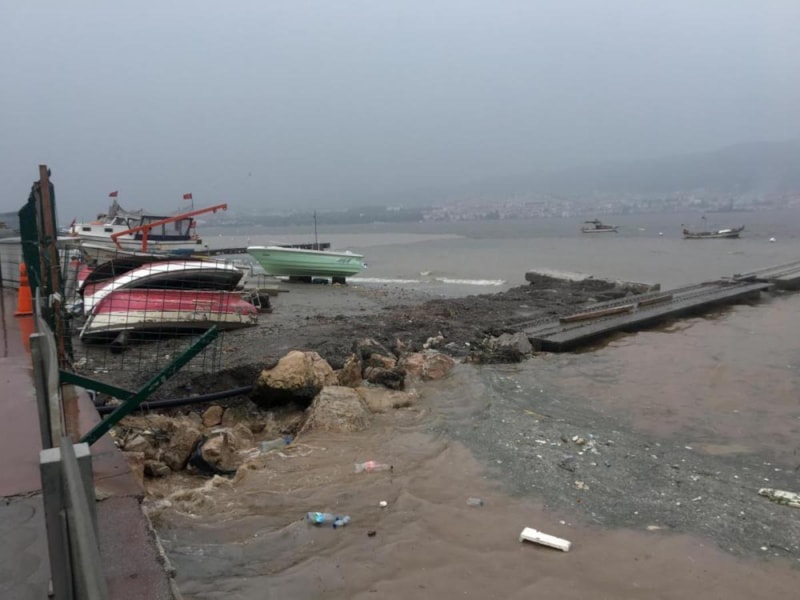 Kentte etkisini gösteren fırtına ve yağışlı havanın ardından denizde kirlilik oluşurken, suyun rengi ise kahverengiye döndü.