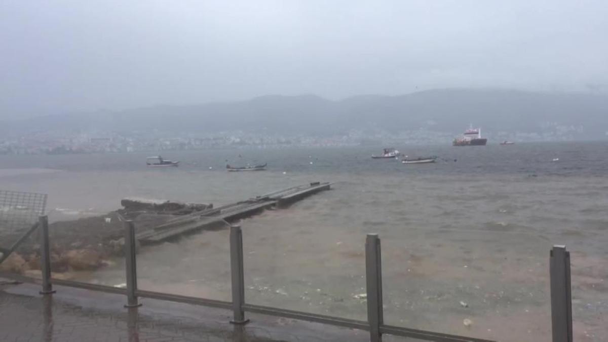 Körfez'de bulunan Tütünçiftlik Sahili'nde yağışlı havanın ardından denizin rengi kahverengiye döndü. Fırtına sonrası denizde kirlilik de oluştu.