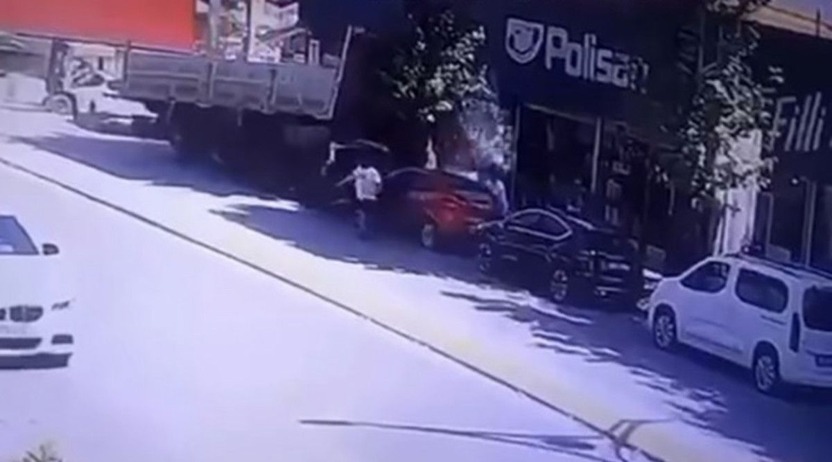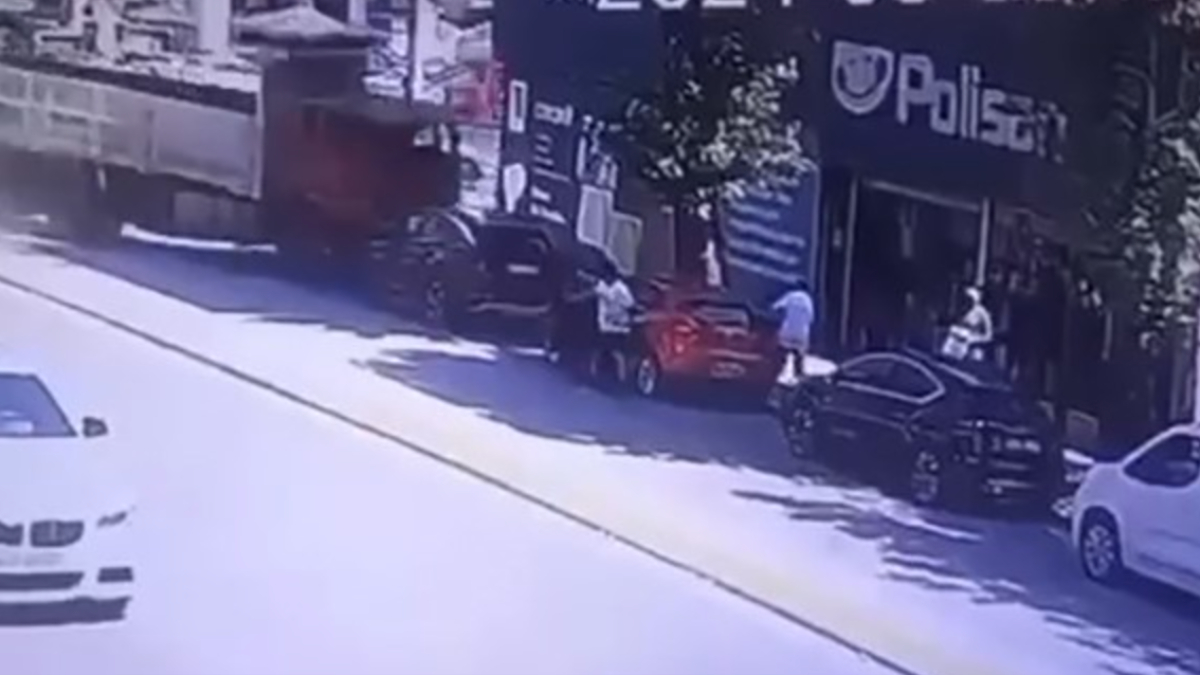 Aynı zamanda görüntüde kırmızı otomobilden inen 2 kişinin kazadan kıl payı kurtuldukları ve panikle koştukları anlar da yer aldı.