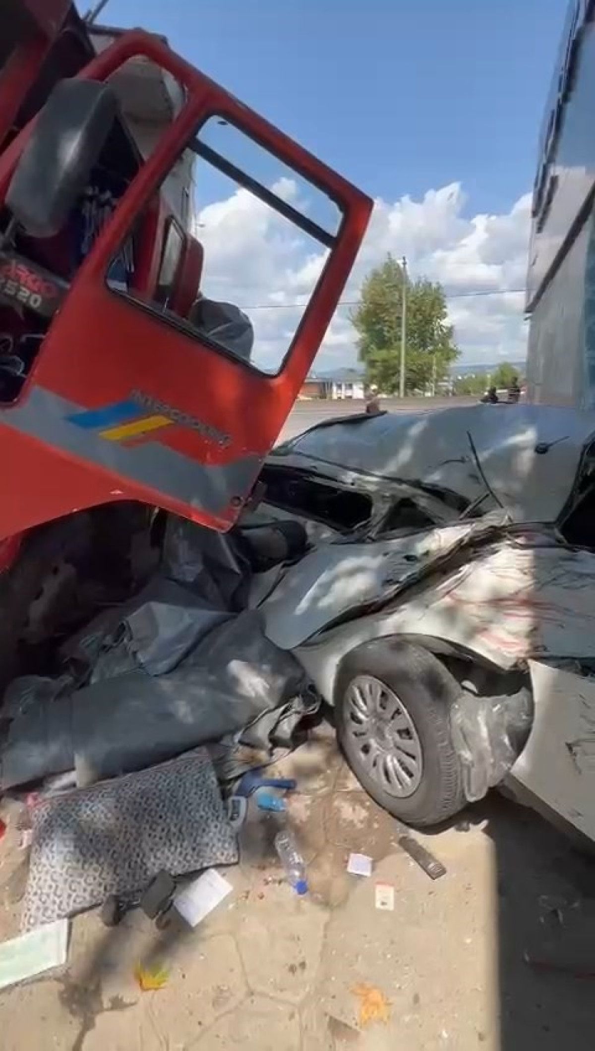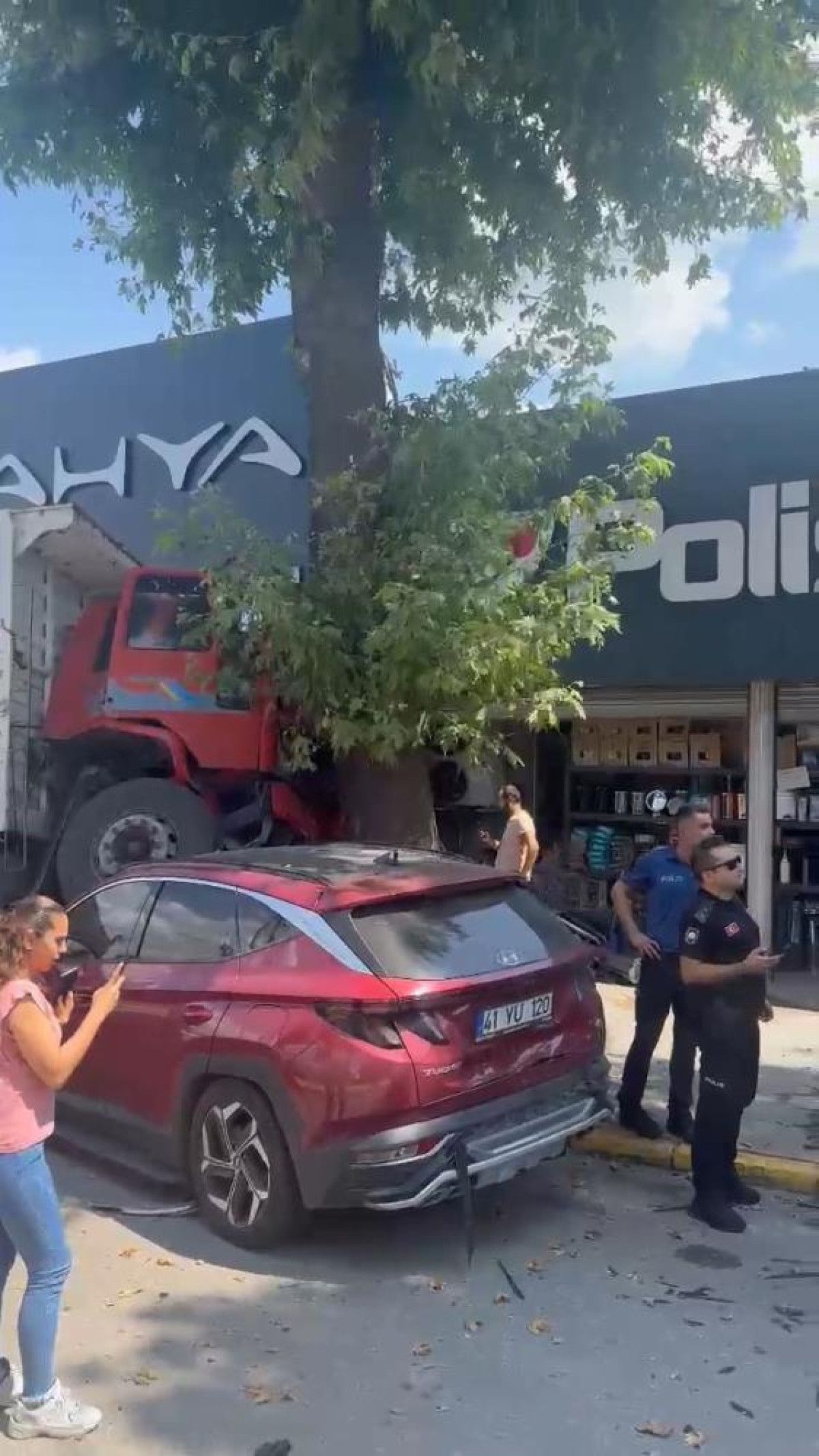Ardından kamyon ağaca çarparak durabildi.
