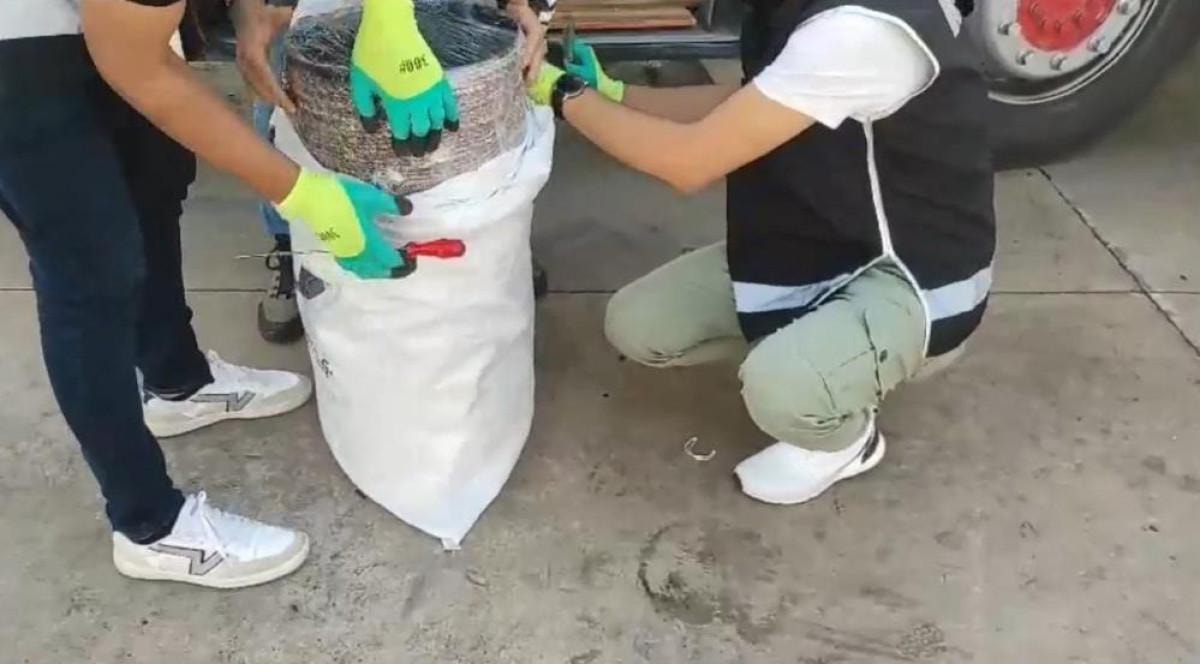 Yapılan aramada bagaj kısmındaki çuvallar da incelendi.