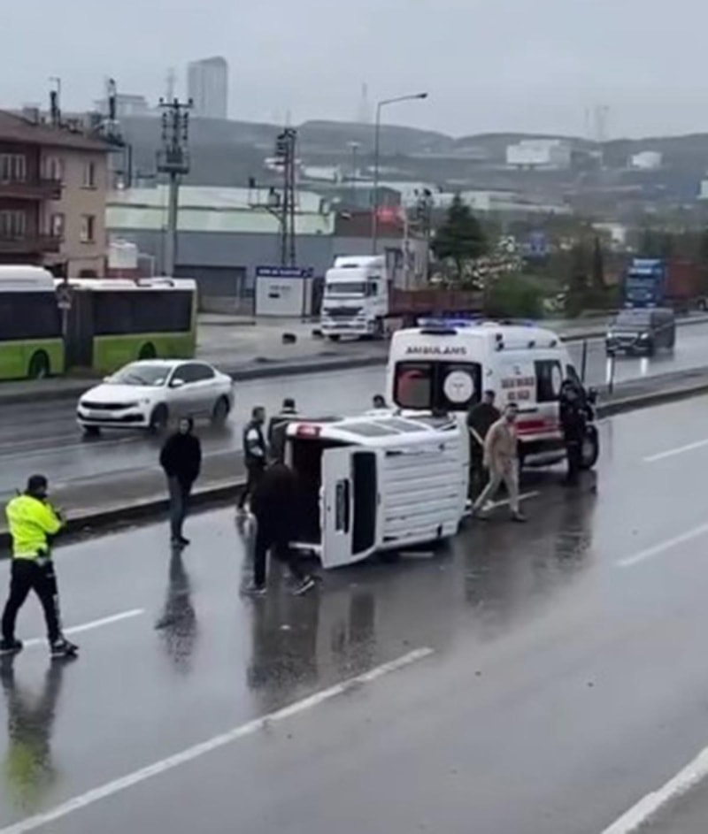 Kocaeli'nin Dilovası ilçesi D-100 kara yolunun İstanbul istikametinde seyir halinde olan hafif ticari araç kontrolden çıkarak takla attı.