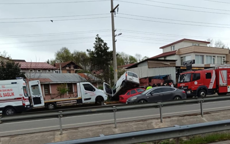 Kartepe ilçesinde sürücüsünün kontrolünü kaybettiği hafif ticari araç, oto tamirhanesi önüne bırakılan otomobile çarptı. Kazada 3 kişinin yaralandığı bildirildi.