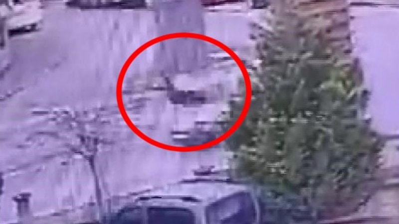Kocaeli'de yolun karşısına geçmeye çalışan bekçiye hafif ticari araç çarptı. Kaza güvenlik kamerasınca görüntülendi.