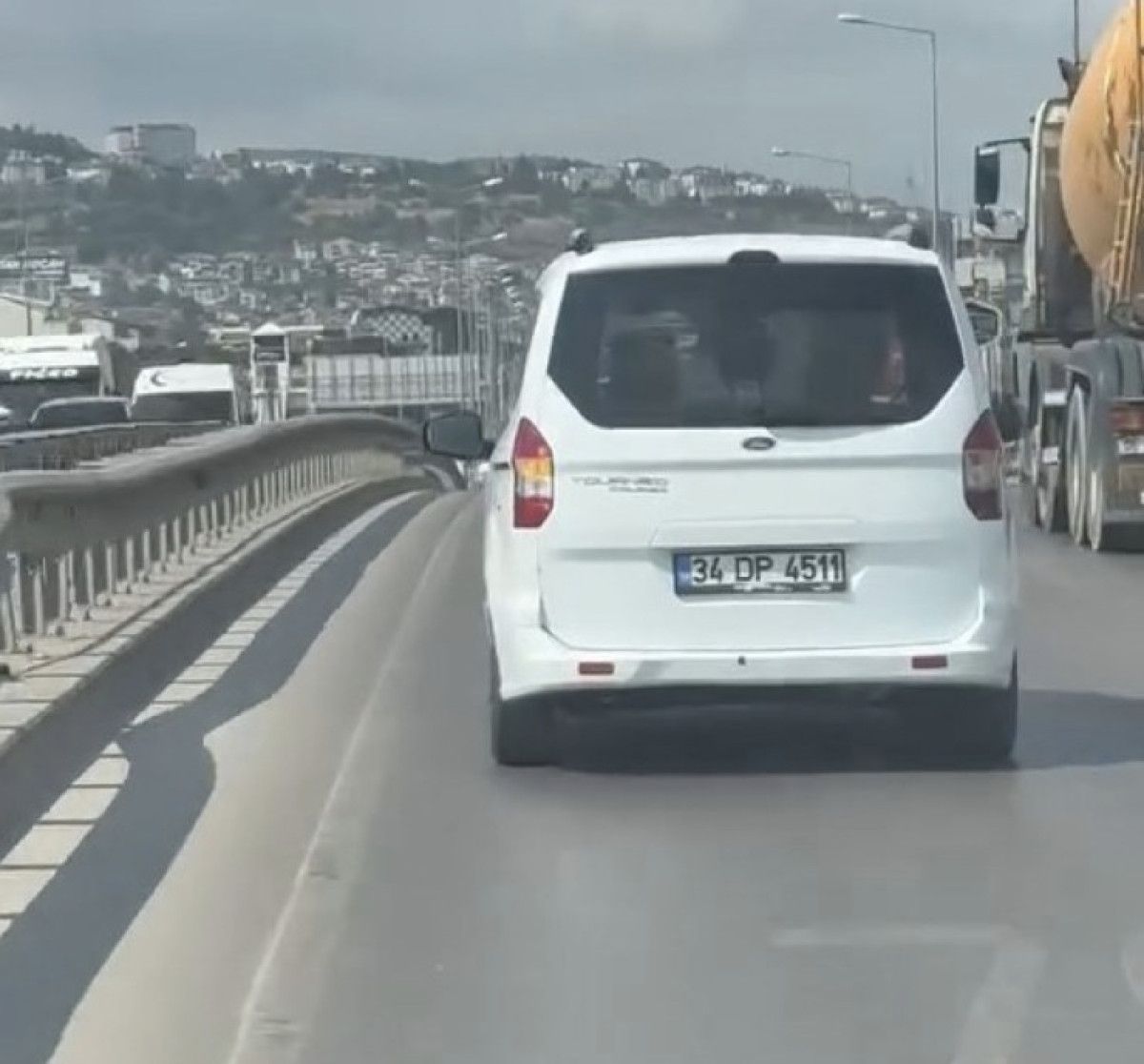 Siren ve kornaya rağmen plakası 34 DP 4511 olan hafif ticari aracın sürücüsü, ambulansa yol vermeyerek aracıyla sol şeritten ilerlemeye devam etti.