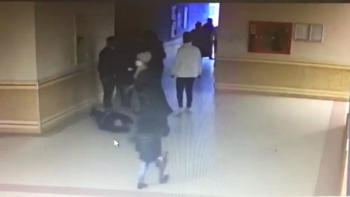 Ayrıca güvenlik görevlisinin yardımına hastane personeli ve vatandaşların koştuğu, saldırganın yerde baygın yatan güvenlik görevlisinin yanına gelip, yeniden hamle yaptığı görüldü.